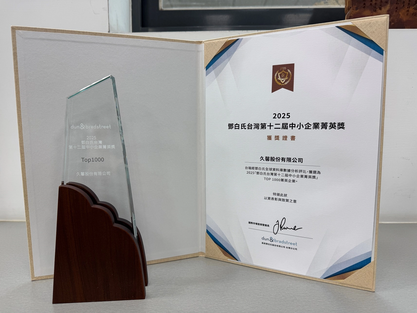 久馨股份有限公司榮獲 2025年邓白氏中小企業菁英獎,肯定本公司在專業實力、誠信經營與持續創新方面的卓越表現。 此項殊榮歸功於全體團隊的努力,以及客戶與合作夥伴長期的信任與支持,我們深表感謝。 展望未來,久馨將持續: 提供高品質產品與服務 堅守專業與誠信原則 投資創新與永續發展 每一項成就都源自您的信任與合作,我們期待與您攜手邁向更高的里程碑。
